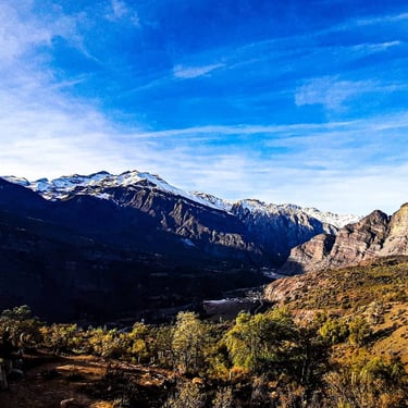 📌 Vistas panorámicas del Cajón del Río Colorado, cordillera central y Alpes andinos. Identidades del Maipo